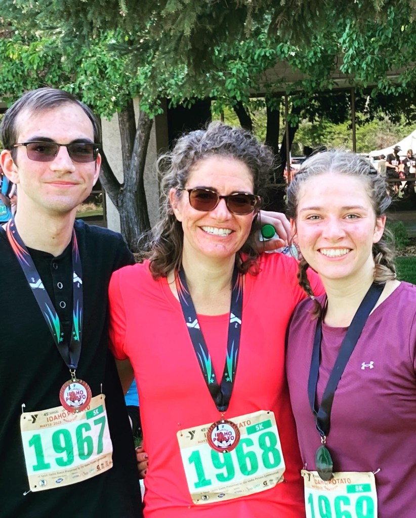 I like to be outdoors, especially for mountain biking and hiking. Our family spends a lot of time running on the trails. We also like to work in the garden.